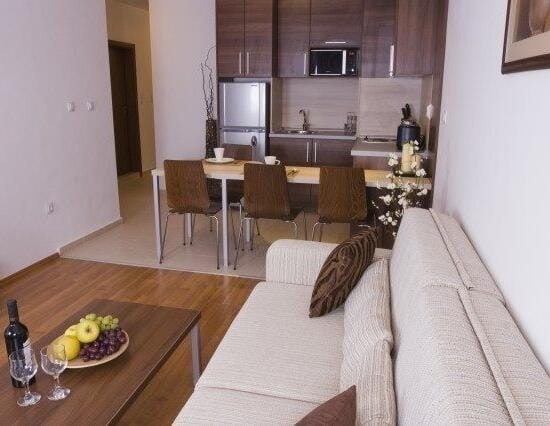 - Apartmani za 2 do 4 osobe (2+2): spavaća soba sa francuskim krevetom i dnevni boravak sa dvosedom na razvlačenje.