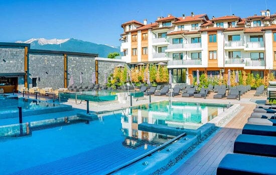 Lokacija: Grand Hotel Bansko 5* je jedan od najboljih, najpoznatijih i najtraženijih hotela u Banskom. Odlikuju ga dobar smeštaj, neverovatno raznovrsna hrana u restoranu, kao i vrhunski spa centar na preko 2000 m2 sa kompleksom otvorenih i zatvorenih bazena sa termo-mineralnom vodom 36 stepeni !!! Lociran je na samom ulasku u Bansko i udaljen je oko 1,5 km od gondole i svega 7 minuta hoda od starog centra Banskog. Od sezone 2026. hotel će imati kategoriju 5 *.