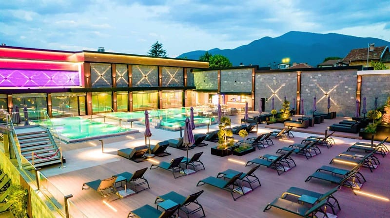 Sadržaj hotela: recepcija, lobi, lobi bar, restoran-mehana, lounge& viski bar, kazino, dečija igraonica, kozmetički salon, frizerski salon, vitaminski bar, ogroman novi otvoreni i zatvoreni spa centar, masaža, fitnes, solarijum, parno kupatilo, više vrsta sauna, đakuzi, zatvoreni bazeni, konferencijska sala, krevetac (na upit), sef (uz doplatu), parking (parking iza hotela je besplatan, a parking ispred ulaza u hotel je uz doplatu). Početkom 2025. godine u rad je pušten i NOVI DEO ZATVORENOG SPA CENTAR – VELIKI ZATVORENI BAZEN SA TERMO-MINERALNOM VODOM 36 stepeni, PARNO KUPATILO, SAUNA, RELAKS SOBA, KAO I CEO KOMPLEKS OTVORENIH BAZEN SA TERMO-MINERALNOM VODOM !!!