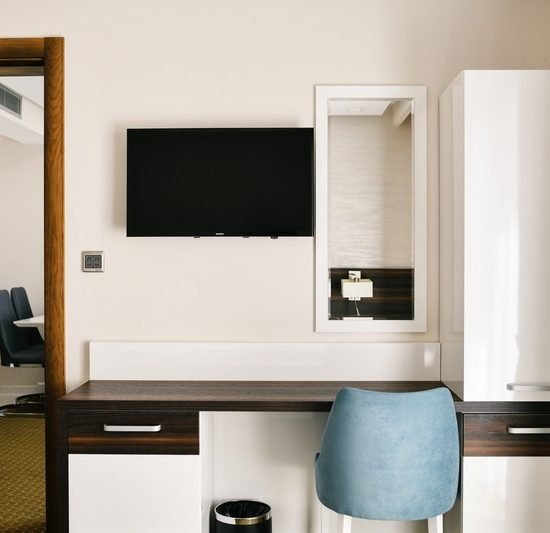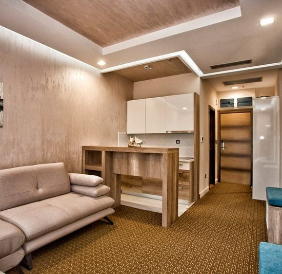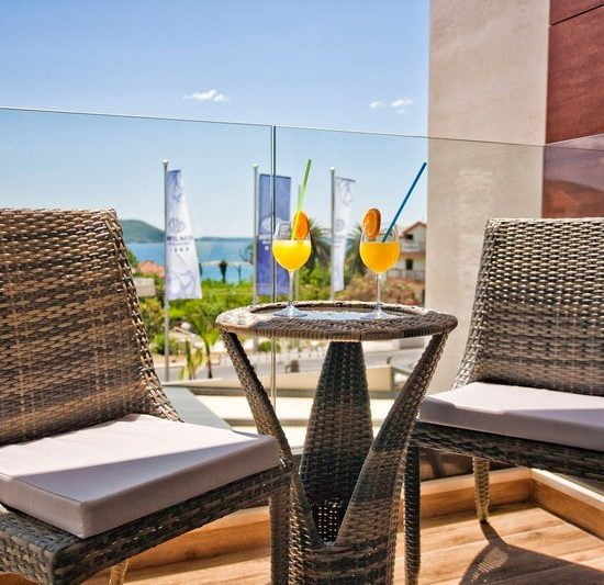 U sobi: Sve sobe su klimatizovane i opremljene sa: TV, internetom, mini barom, sefom, fenom, balkonom sa garniturama.