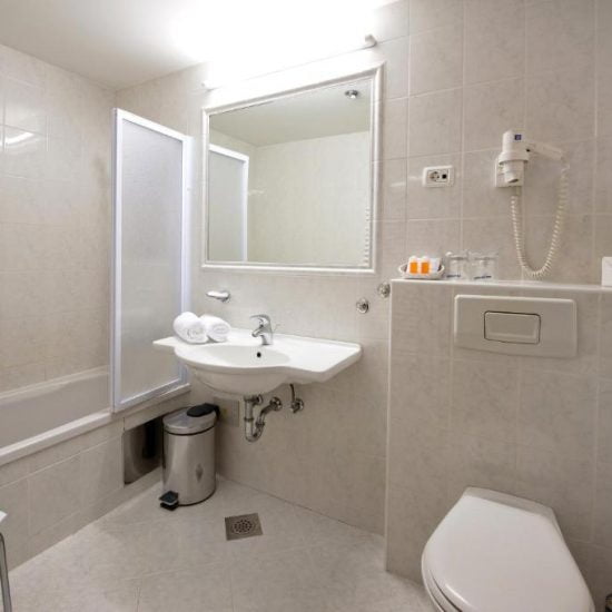 Uživati možete u vrhunskoj gastronomskoj ponudi, opuštati se možete u wellnessu s bazenima, saunama, salonu za masažu gde sebi možete priuštiti kozmetičku negu. S terase bazena pruža se prekrasan pogled na vrhove Julijskih Alpa, gde možete uživati u lepoti prirode i zracima sunca. Najmlađi će uživati u bazenu s toboganom i brojnim programima za porodicu. U sobama se nalazi: satelitska TV, mini bar, sef, klima uređaj, telefon, fen za kosu, kupatilo s tušem ili kadom, peškiri, ogrtač.