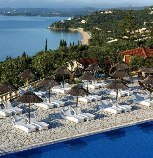 LOKACIJA: Hotel Pantokrator *** Krf je smešten u mestu Barbati. Lociran je u malom živopisnom mestu Barbati na uzvišenju sa koga se pruža zaista impresivan pogled na zaliv, planine i grad Krf u daljini. Od glavnog grada Krfa je udaljen 16 km (saobraća linija gradskog prevoza) i isto toliko i od aerodroma. Šljunkovita plaža, koja je nagrađena plavom zastavicom i ujedno je jedna od najlepših na ostrvu, je na 300 metara udaljenosti, silazi se putem i stepenicama.