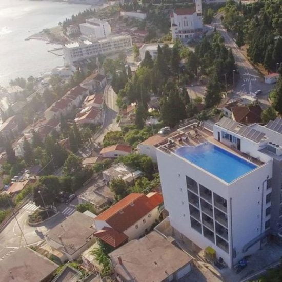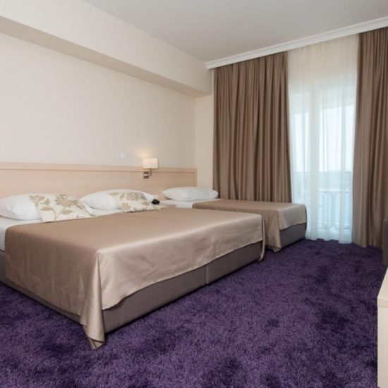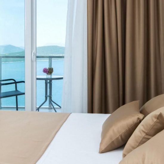 Smeštaj: Na raspolaganju Vam je 58 moderno uređenih i udobnih soba. Sve sobe sadrže: kablovsku televiziju s 20 programa, balkon, klimu, telefon, minibar, besplatan Wi-Fi, kupatilo s tušem, fen za kosu, wc. Kada poželite osetiti mirise i zvuke mora, mediteranskog zelenila ili toplinu sunčevih zraka, dovoljno je doći do prozora ili balkona Vaše sobe odakle se pruža prekrasan pogled na more, zaliv i obalu.