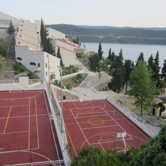 Smeštaj: Raspolaže kapacitetom od 330 kreveta raspoređenih u jednokrevetnim ( francuski krevet, TWC; TV, morska strana ), dvokrevetnim sobama sa pomoćnim krevetom ( odvojeni kreveti TWC, TV morska strana ), dvokrevetnim sobama s pomoćnim krevetom (odvojeni kreveti , TWC, TV, balkon i apartmanima.