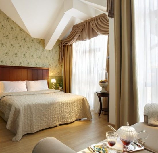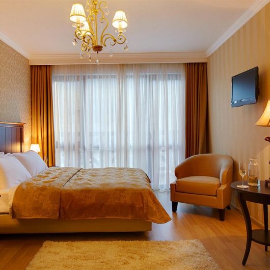 - Jednosobni apartman /Junior Suite/(2+2) sa pogledom na grad ili planinu za smeštaj 2-4 osoba (45 – 60 m2): elegantna prostorija, saastoji se iz spavaće sobe sa francuskim krevetom i dnevnog boravka sa sofom na razvlačenje, 2 LCD TV. Smeštaj za max 3 odrasle osobe ili 2 odrasle osobe i 2 dece;
