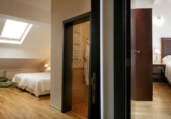 - Trosobni apartman-mezonet /Grande Suites/ za smeštaj 6-8 osoba (175 m2) sa tri posebne spavaće sobe na drugom nivou, 2 LCD TV, prostrana dnevna soba sa sofom na razvlačenje i sa kuhinskim delom, posedno kupatilo i WC. Smeštaj max 7 odraslih osoba ili 6 odraslih osoba i 2 dece..