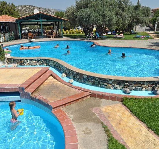 Lokacija: 350 metara udaljenosti od plaže na površini od oko 4.5 ha, u dvorištu koje je pokriveno maslinama i palmama.