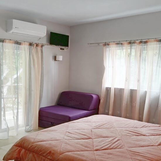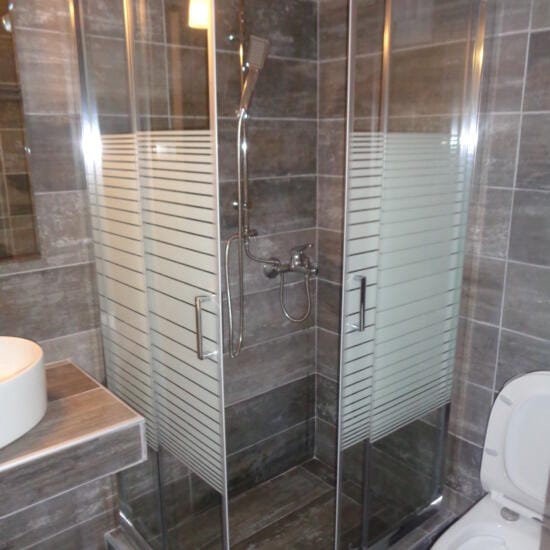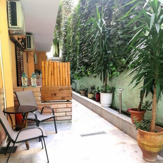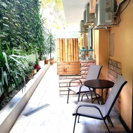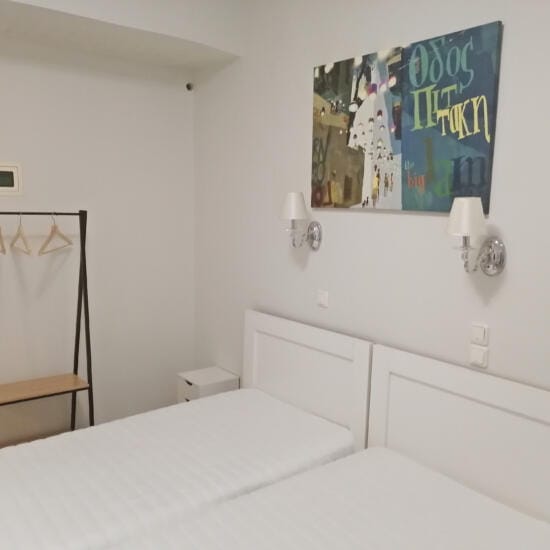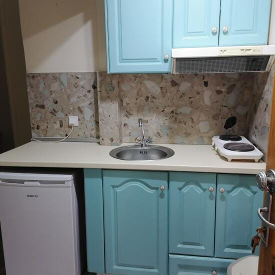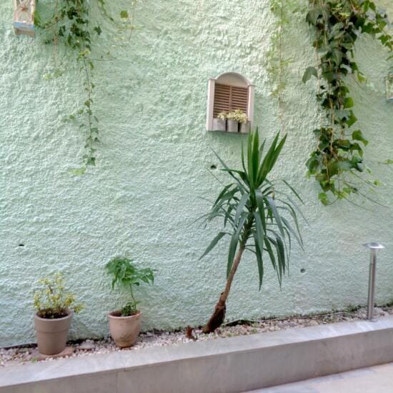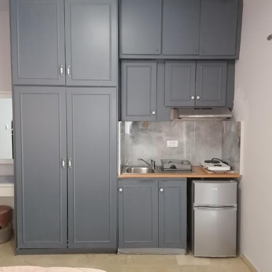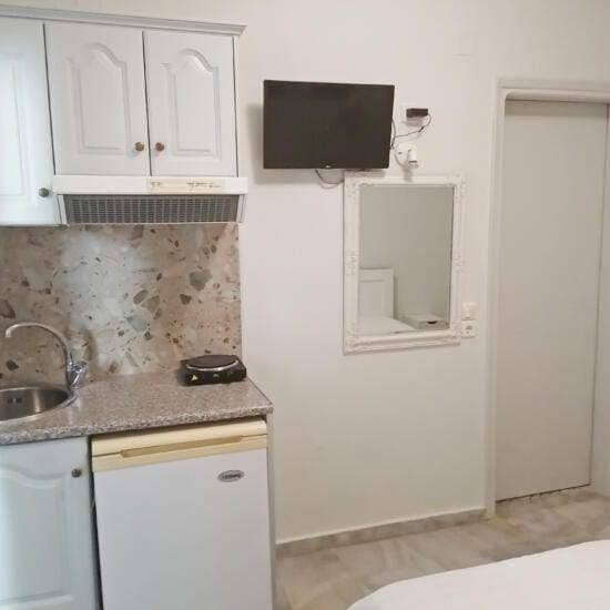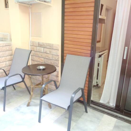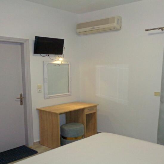 Smeštaj: Studiji za dve i tri osobe nalaze se u prizemlju i na spratu kuće. Terase studija u prizemlju su prolazne i predstavljaju ograđeni deo dvorišta sa pogledom na zid (videti na fotografijama).